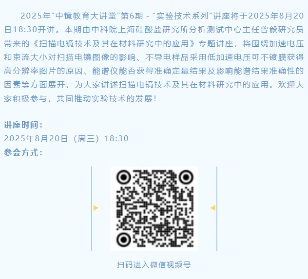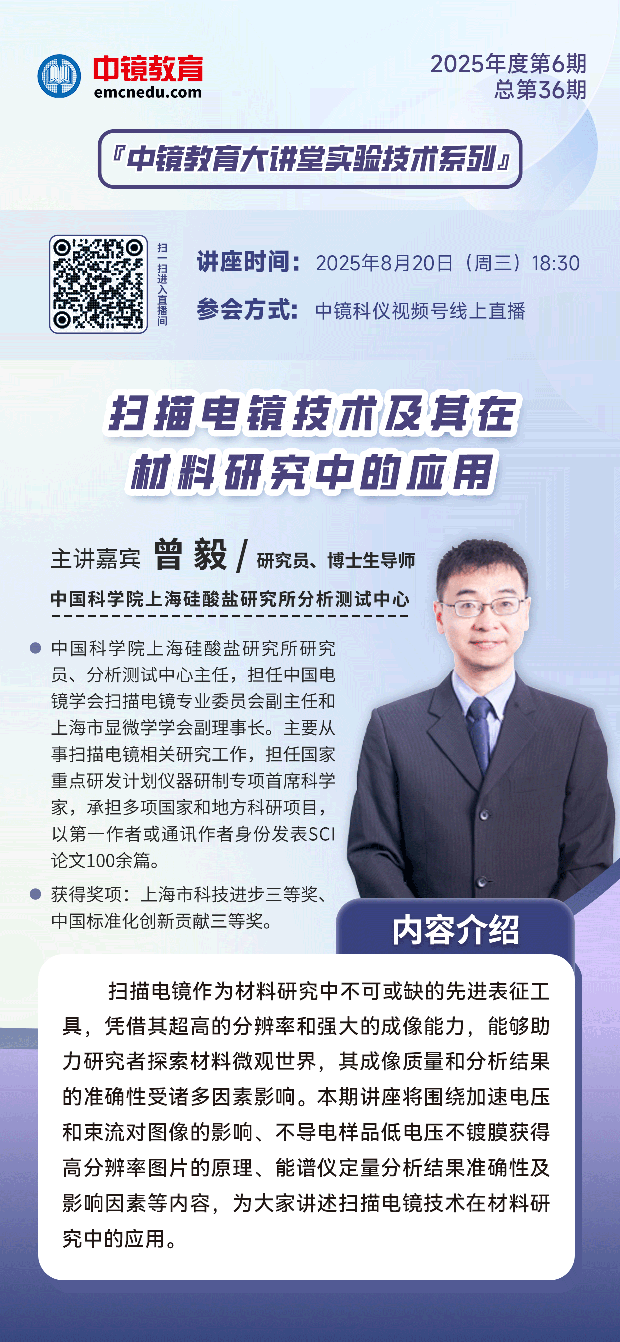【講座預(yù)告】中鏡教育大講堂-實驗技術(shù)系列2025年第6期(總第36期)