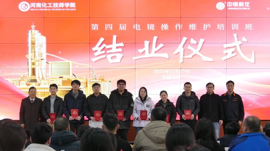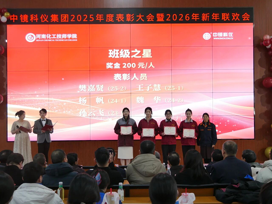 【廿載同行 共鑄輝煌】 中鏡科儀集團2025年度表彰大會暨 2026年新年聯歡會成功舉行! 2025年12月27日下午,以“廿載同行 共鑄輝煌”為主題的中鏡科儀集團2025年度表彰大會暨2026年新年聯歡會,在河南化工技師學院現代化工實訓大樓617報告廳隆重舉行。大會設立開封主會場及北京、南京、廣州、沈陽、西安、北美六大分會場,中鏡科儀集團全體員工、河南化工技師學院檢驗檢測產業學院全體師生及相關單位代表齊聚一堂,共慶廿載榮光,啟航新程。 會議現場 大會在莊嚴而熱烈的氛圍中拉開序幕。多位行業頂尖專家學者與中鏡科儀集團及合作院校的領導共同出席本次盛會。出席會議的專家領導有:第三屆電子顯微鏡技術專業教育教學指導委員會專家教授——楊勇驥(海軍軍醫大學)、洪健(浙江大學)、李炎(河南科技大學)、陳明霞(西安交通大學)、崔麗(吉林大學)、范光(核工業北京地質研究院)、李吉學(浙江大學);特邀專家——河北醫科大學原電鏡實驗中心主任、中國電鏡學會生物醫學專業委員會主任委員、首屆電鏡技術專家咨詢委副主任委員馬洪駿教授,西安交通大學王鵬教授,上海大學工程師寇春合;合作院校領導及中鏡科儀集團——河南化工技師學院黨委委員、副校長趙峰,河南化工技師學院檢驗檢測產業學院副院長李曉英、火隆、王振峰,微束科技集團、中鏡科儀集團董事長、河南電鏡學會副理事長、第三屆電鏡專業教指委委員兼秘書長、首屆電鏡技術專家咨詢委委員兼秘書長郭新勇,微束科技集團副總經理、中鏡科儀集團總經理任江鳴,微束科技集團副總經理、中科百測集團總經理許耀華,中鏡科儀集團副總經理王萍,中鏡科儀科技副總、河南大學教授張普濤,菲泰姆品牌總經理董保杰等。中鏡科儀各地區負責人及全體員工和電鏡專業應往屆畢業生在線參會。大會由中鏡科儀集團市場中心孔德勝、李夢娜與電鏡專業25級學生劉天送、侯錦譽共同主持。 校企聯合主持節目 大會伊始,河南化工技師學院黨委委員、副校長趙峰致辭,他在致辭中回顧校企共建電鏡專業成果,強調產教融合多方共贏,提出未來深化合作、擴大國際交流及強化社會服務三大展望,通過校企合作使電鏡專業再創輝煌。 趙峰致辭 大會期間,第四屆電鏡操作維護培訓班結業儀式在年會中舉行。該培訓班以夯實電鏡人才實操能力、助力行業技術水平提升為核心目標。海軍軍醫大學教授楊勇驥致辭,祝賀學員結業并勉勵大家理論結合實踐、創新提能。廣州國家實驗室陳偉棟作為學員代表致謝,表示將學以致用,為電鏡領域發展貢獻力量。隨后,趙峰、郭新勇、寇春合共同為學員頒發結業證書。 楊勇驥致辭 陳偉棟作為學員代表發言 頒發結業證書合影 本次年會設置了多項表彰環節,其中特別設置了“科普達人頒獎”環節。開封市科學技術協會正式聘任中鏡科儀集團的郭新勇、張康、郭芳銘、趙勝藍、裴霞5人為2025年度“開封市科普達人”。這一聘任不僅是對中鏡科儀長期深耕電鏡科普領域、助力全民科學素質提升的高度認可與充分肯定,彰顯了企業在推動科學知識普及、營造良好科學氛圍方面的積極貢獻;更通過樹立科普榜樣,激勵更多人投身科普事業,激發社會各界對科學知識的關注與熱情,為提升全民科學素養注入強大動力。現場,楊勇驥教授為科普達人頒發榮譽聘書,趙勝藍、裴霞代表領獎,贏得全場熱烈掌聲。 科普達人合影 2025年,中鏡科儀集團與河南化工技師學院檢驗檢測產業學院深化產教融合成果顯著,在年度表彰中特別聚焦電鏡專業學生成長——對優秀學子予以隆重表彰,既展現了校企協同育人模式下高素質技術技能人才的培育成效,也為職業教育服務科研創新提供了生動范本。同期,中鏡科儀集團對內部員工進行表彰,涵蓋個人貢獻、管理創新及跨部門協作典范等領域,通過樹立標桿強化“奮斗者文化”,既肯定了員工在挑戰中砥礪奮進的個體價值,也凝聚了企業以人才驅動高質量發展、共鑄行業輝煌的戰略共識。 電鏡專業頒獎現場圖集: 中鏡科儀集團頒獎現場圖集: 員工與師生攜手打造的聯歡會將年會氛圍推向沸點,整場演出以"技術賦能藝術,創新融合情懷"為脈絡,呈現了一場視聽與思想的雙重盛宴。舞蹈《讓我們一起出發》以剛勁有力的動作勾勒出勇攀高峰的奮進姿態;樂器聯奏《小寶貝—非洲鼓》、《茍活—架子鼓》、《中學時代—吉他彈唱》跨風格碰撞,展現團隊多元活力;由電鏡專業師生自編自導的情景劇《鈉試樣的"信號派對"》,將元素分析過程轉化為趣味科普劇場,引發現場科研工作者的共鳴掌聲;詩朗誦《微觀筑夢,黨旗領航》以鏗鏘聲線傳遞黨建引領企業高質量發展的初心使命;實習學生代表登臺演講《實踐淬志,汗映青春》,以輕快節奏講述實習期間成長故事,生動詮釋"匠心傳承"的實踐真諦;快板說唱《科技賦能新時代》快板說唱交織間以科技金句點燃全場;創意歌舞《聚力陣線聯盟》則通過舞蹈與歌聲的融合,生動詮釋跨領域協作的無限可能;線上節目《好運來》、《上春山》則通過線上互動打破空間界限,將祝福送至現場。節目間隙的幸運觀眾抽獎環節,讓線上線下參會者倍感集體溫暖,歡樂氛圍持續升溫。 節目現場圖集: 年會最后,由任江鳴做新年致辭,他在致辭中特別強調了本次年會的主題“廿載同行 共鑄輝煌”的深刻內涵,并指出2025年