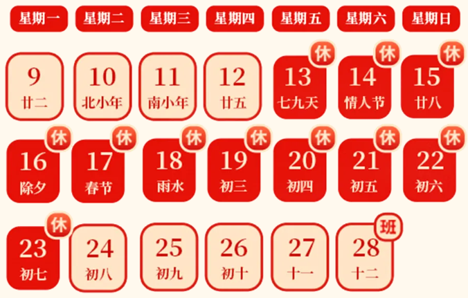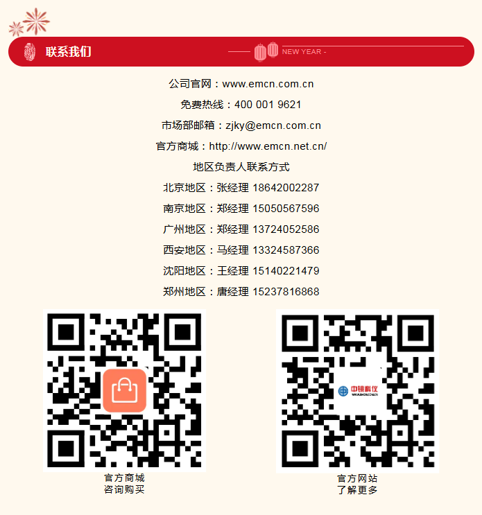新元肇啟呈嘉瑞,賀歲呈祥納萬祺!值此春節來臨之際,中鏡科儀集團全體員工向長期以來關注和支持我們的各級領導、廣大客戶及合作伙伴,致以誠摯的問候和衷心的感謝! 新的一年我們將繼續不負期待,為您提供更優質的服務!預祝大家新春快樂、闔家幸福、萬事勝意! 中鏡科儀春節放假安排: 2026年2月13日(星期五,農歷臘月二十六)至2026年2月23日(星期一,農歷正月初七)放假,共11天。 假期商城不打烊,客服不下線,如有需求歡迎隨時聯系!