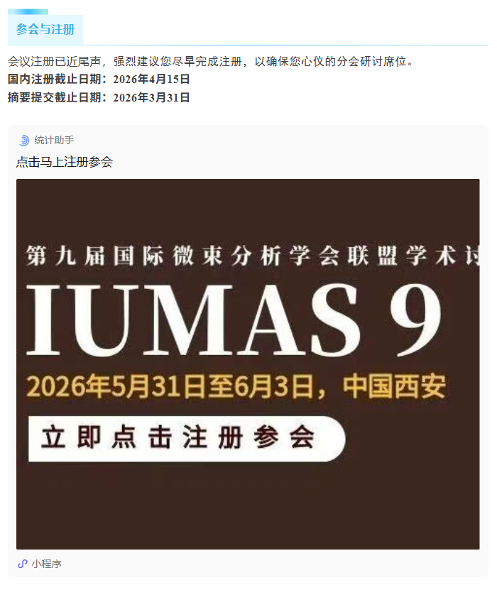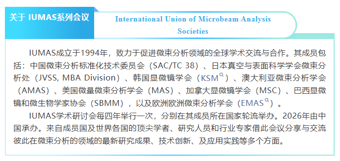【行業會議】第九屆國際微束分析學會聯盟學術討論會(IUMAS 9)· 第二輪通知
