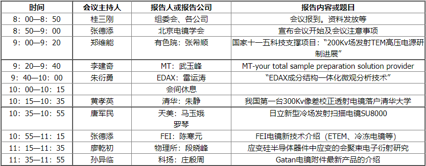 08年度北京市電子顯微學(xué)年會(huì)在北科大廈圓滿結(jié)束 學(xué)術(shù)報(bào)告時(shí)間安排表(2009年1月13日、星期二、北科大廈三樓學(xué)術(shù)廳)