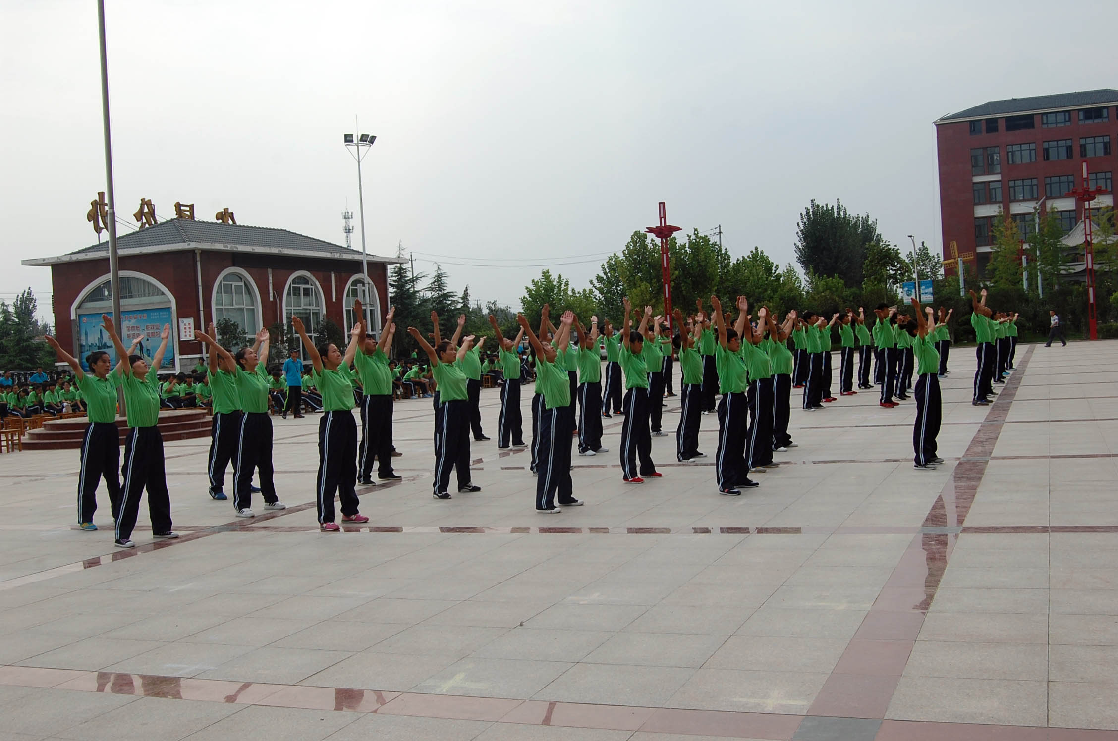 為了豐富校園文體活動,增強學生的身體素質,促進班級建設,展示同學們積極團結的精神風貌,我校于2015年9月9日下午舉行第九套廣播操比賽。