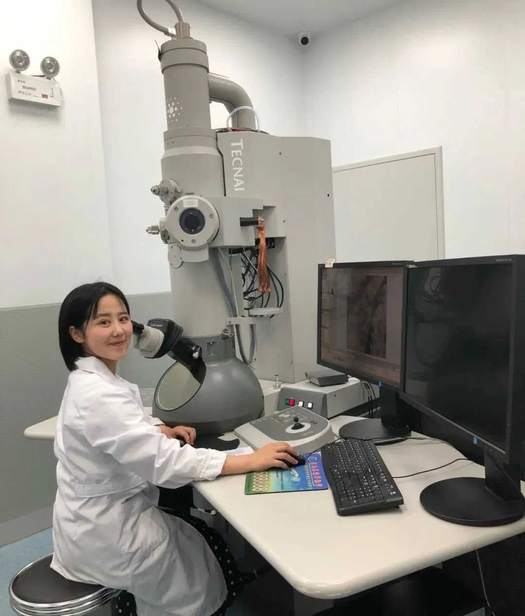 董鵬媛,河南許昌人,2014年-2018年在河南化工技師學院就讀電子顯微鏡技術專業。2016年-2018年在浙江大學冷凍電鏡平臺實習和工作,2018年6月至今在北京大學生命科學學院公共儀器中心電鏡平臺工作,主要負責免疫制樣、常規樣品制備、高壓冷凍制樣及電鏡日常管理與維護等工作