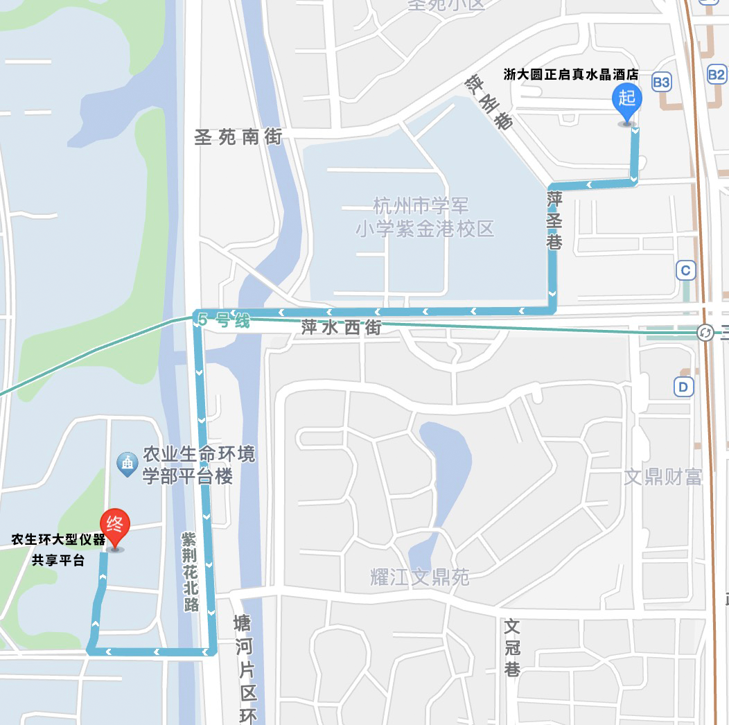 1、杭州東站(高鐵):杭州東站--浙大圓正啟真水晶酒店。地鐵1號線湘湖方向,打鐵關站換乘5號線金星方向,三壩地鐵站C出口,全程約40分鐘,車費5元。出租車車程預計40分鐘,費用約45元。